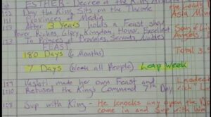 {11:18 min mark} We’ve also proven this in the Book of Esther. In the Book of Esther, the King sits on the Throne 3 Years. He held a Feast 180 Days, and then he has a Feast of 7 Days. Those 7 Days for all the People is a Leap Week. So the Leap Week happens at a certain period of Time, and then the King gets angry. So that’s what happens in the Book of Esther, but it actually gives us this schedule of 7 Days.