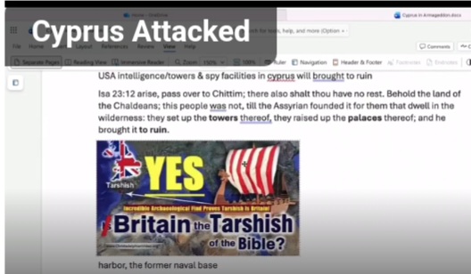 • The majority of what the prophecy tells us is that Cyprus is attacked, but it is not an invasion. It is not to be destroyed. It is because England is here and the Americans are here, and because of their presence using Cyprus as a launching point for military operations in the Middle East, it is going to be targeted.